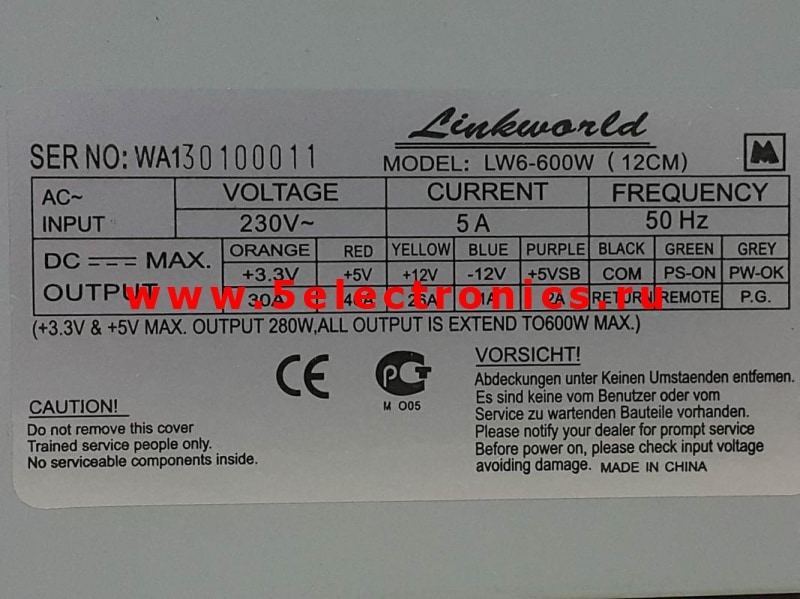 Ток по линии +5 В - 46 A